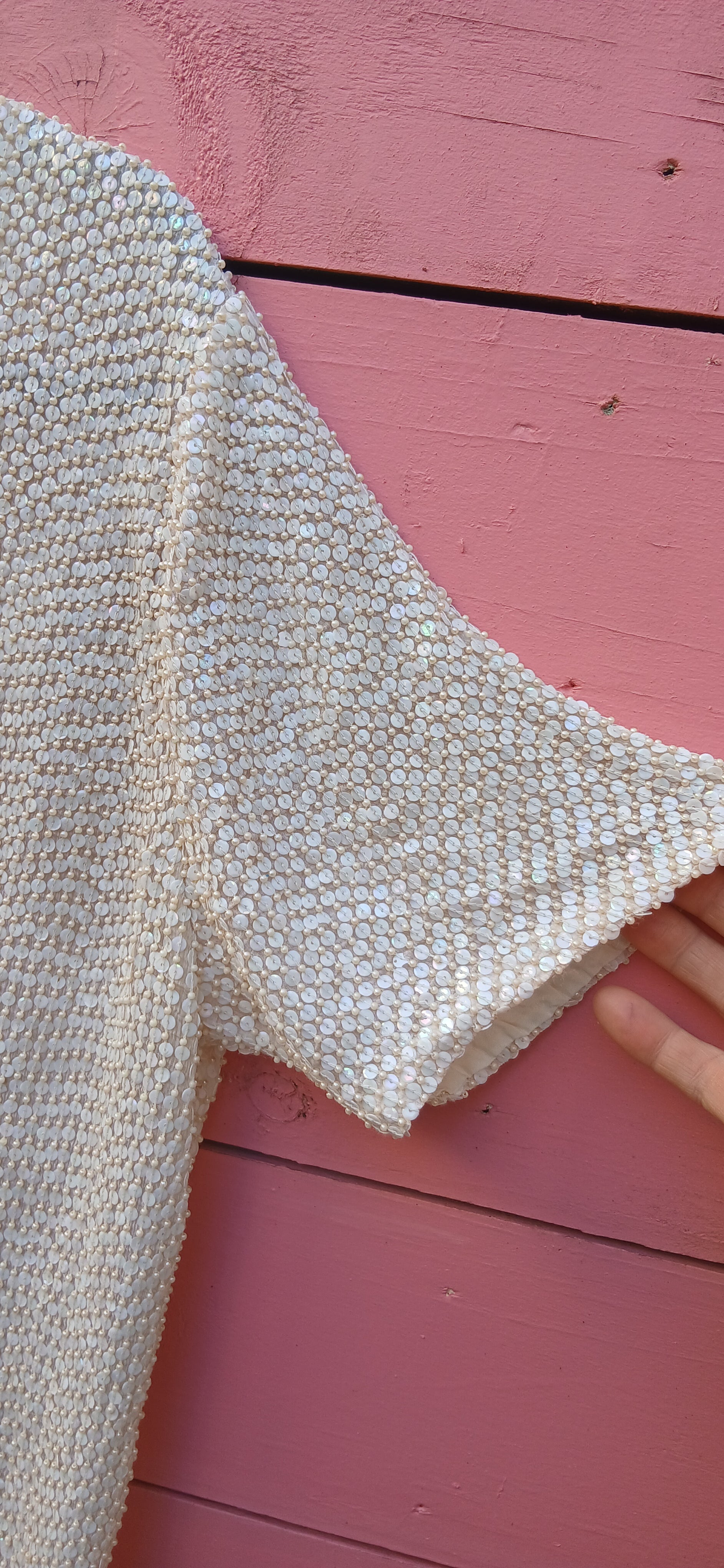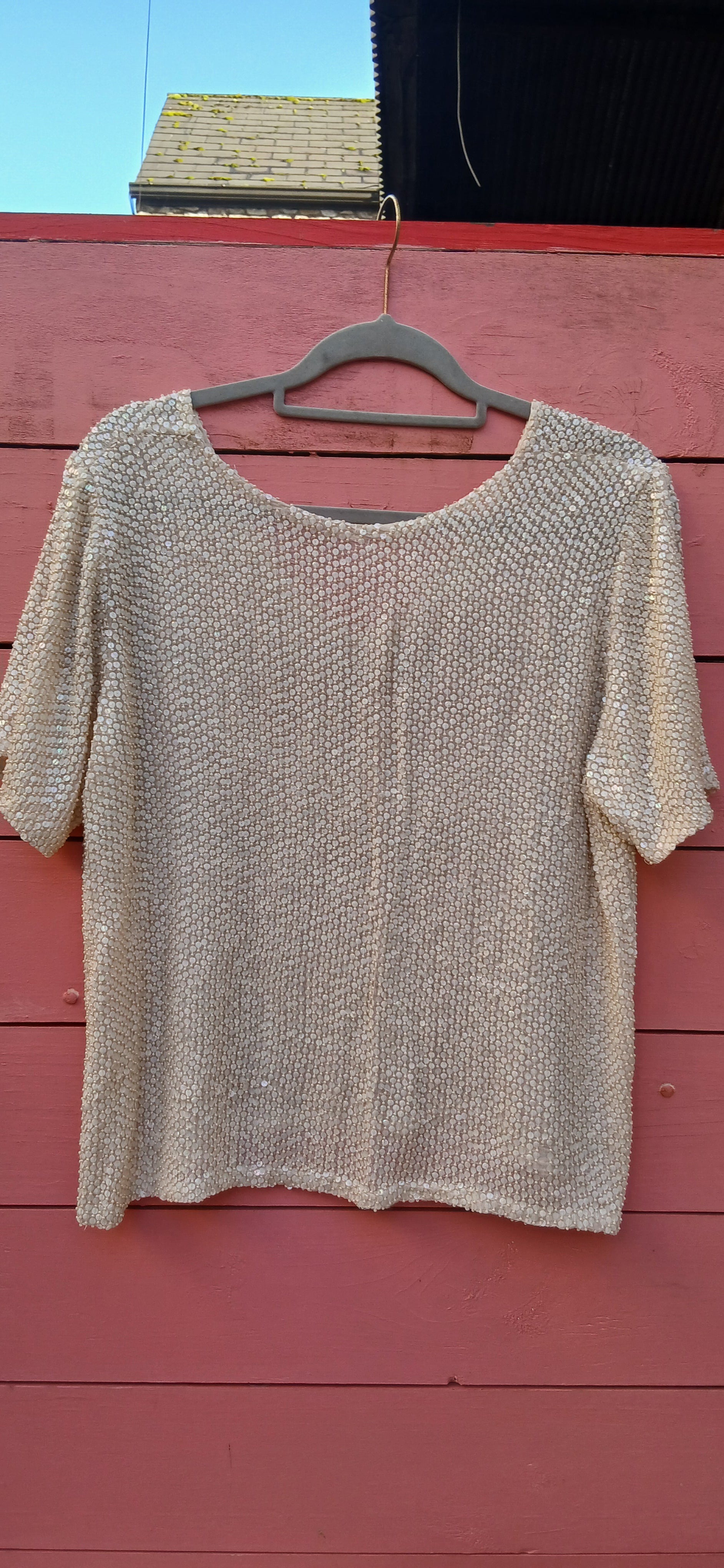 Vintage cream beaded loose fitting top. Handmade- beads are perfect top will fit up to size 16